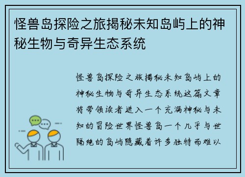 怪兽岛探险之旅揭秘未知岛屿上的神秘生物与奇异生态系统